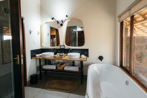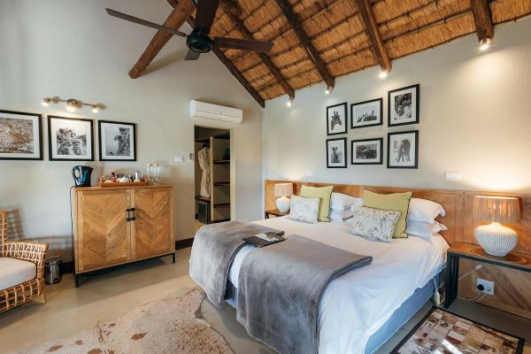 The five luxurious two-sleeper chalets, including one family unit are each well spaced for total privacy, with wonderful panoramic views of the waterhole and conservancy beyond. The chalets all have en-suite bathrooms with wonderful oval baths and picture windows, plus outdoor showers, allowing you to feel like you are immersed in the splendor of the bushveld!