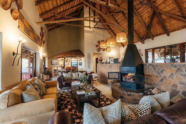 The main area of the Lodge features an indoor dining area and lounge with freestanding fireplace as well as a large bar area. Outside, one can relax by the lovely rock pool or spot game at the waterhole which the outdoor entertainment area overlooks.