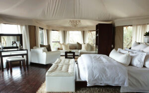 The Honeymoon Tent offers a sophisticated mix of romance, privacy and refined comfort in the heart of the African bush. The Honeymoon Tent features a king-sized bed in a spacious bedroom, and a comfortable separate lounge area for relaxation.